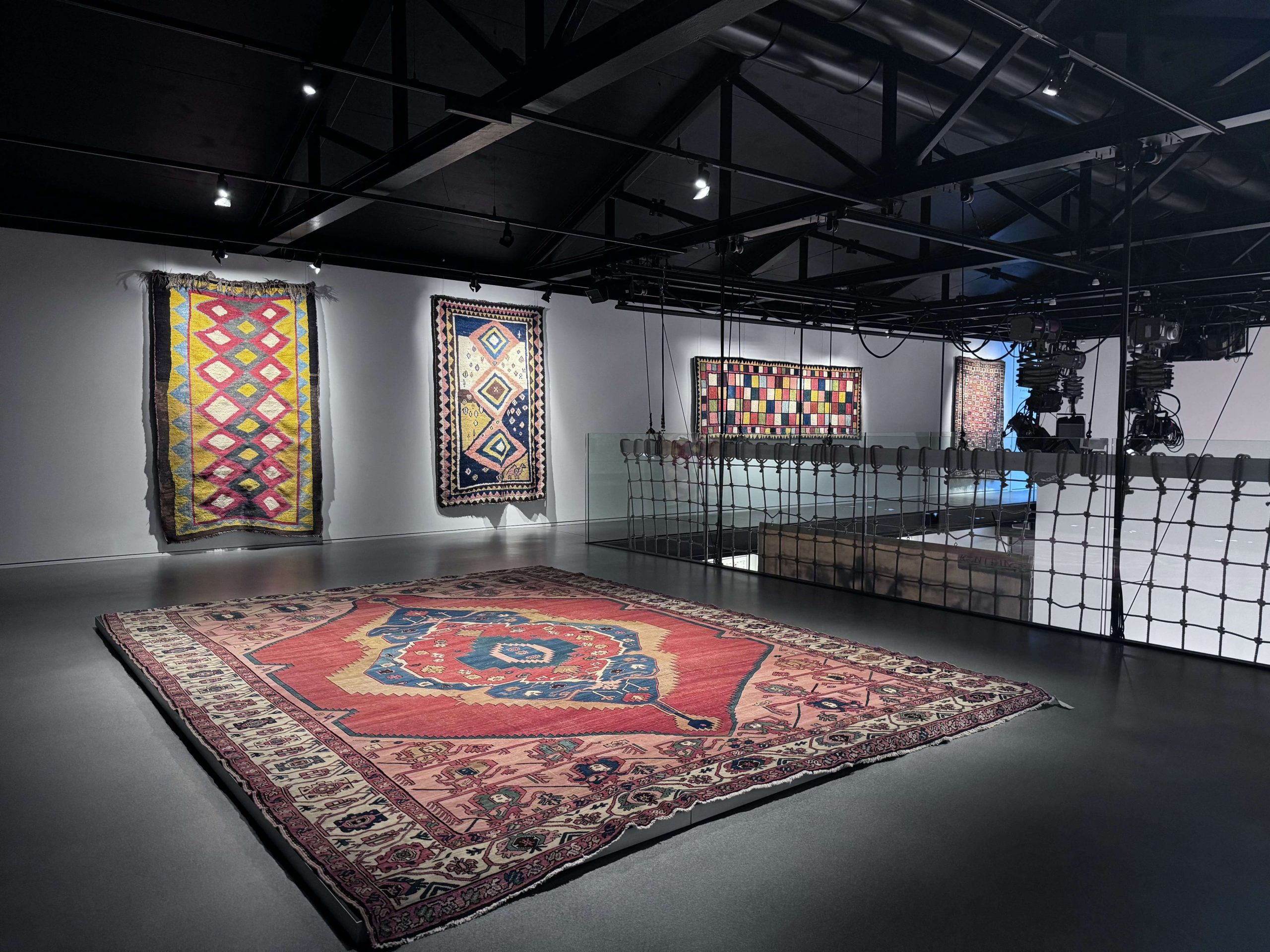 In dialogo visivo e concettuale, una selezione di tappeti Gabbeh e Sarab della Collezione Zaleski, provenienti dalle aree montane della Persia, introduce una narrazione parallela. Colori naturali, campi essenziali, motivi geometrici e figure minute raccontano un mondo istintivo e simbolico, lontano dalla decorazione fastosa e vicino all’esperienza del vivere e dell’erranza.